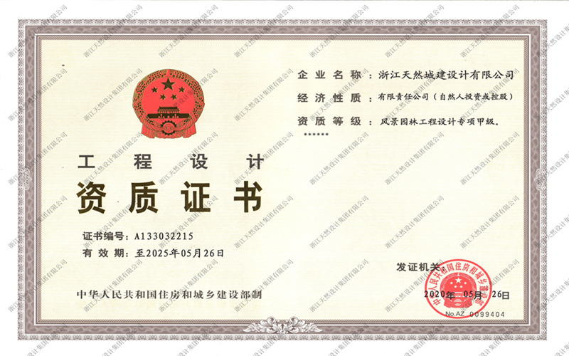 熱烈祝賀集團(tuán)園林設(shè)計(jì)資質(zhì)升級成功,天然城建院一舉晉升甲級院行列。